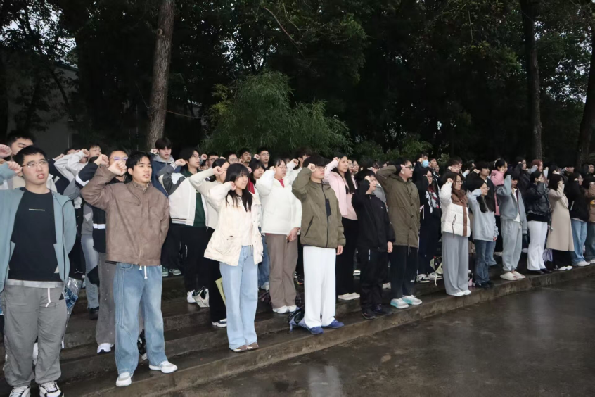 升旗仪式结束后,全体同学面向国旗,高举右拳,在领誓人杨孟哲同学的带领下庄严宣誓。誓词将重庆大学“耐劳苦、尚俭朴、勤学业、爱国家”的校训与新时代青年责任担当深度融合,铿锵有力的誓言彰显着经管学子昂扬向上、奋勇争先的精神风貌。